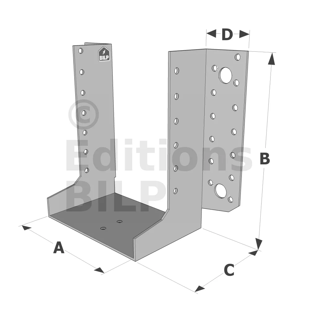- Polyvalence : Disponibles en différentes tailles et profondeurs, les sabots SAE s’adaptent à une variété d’applications, des charpentes aux poteaux, en passant par les angles et les fermettes.