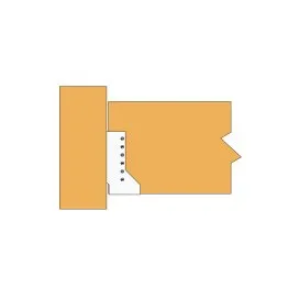 Attention, pour les sabots SAIX à ailes intérieures de largeurs inférieures à 80 mm, les ailes sont recoupées sur la hauteur dans l’axe des perçages de boulons. La fixation sur le porteur est donc uniquement possible par pointes ou vis dans la ligne verticale de perçages Ø5 proche du pli.