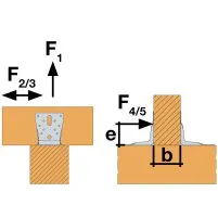 Les capacités des ancrages doivent être vérifiées séparément en multipliant la charge F1 par un coefficient 1.1, la charge F2 par un coefficient de 1 et la charge F5 par un coefficient de 2.2.