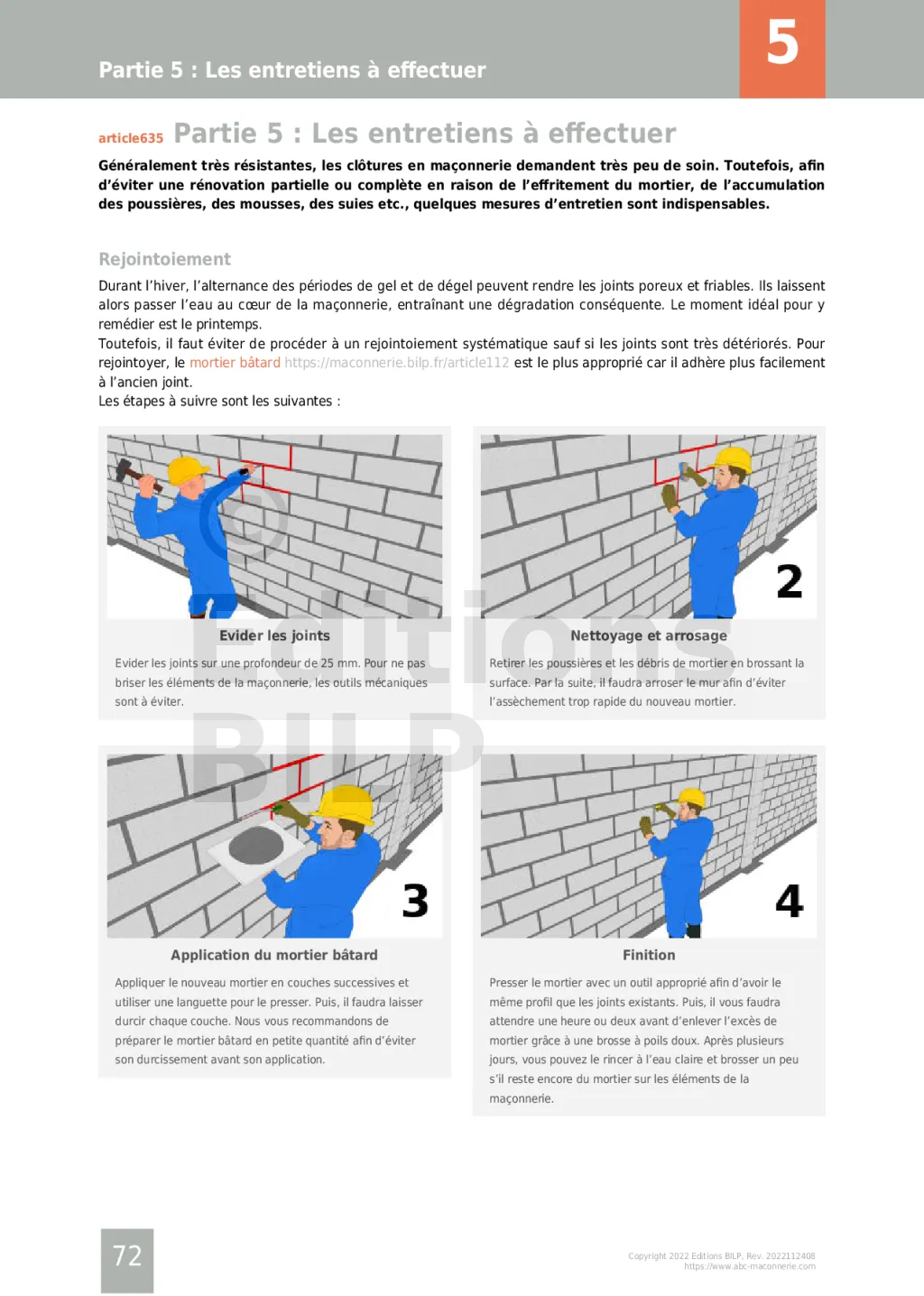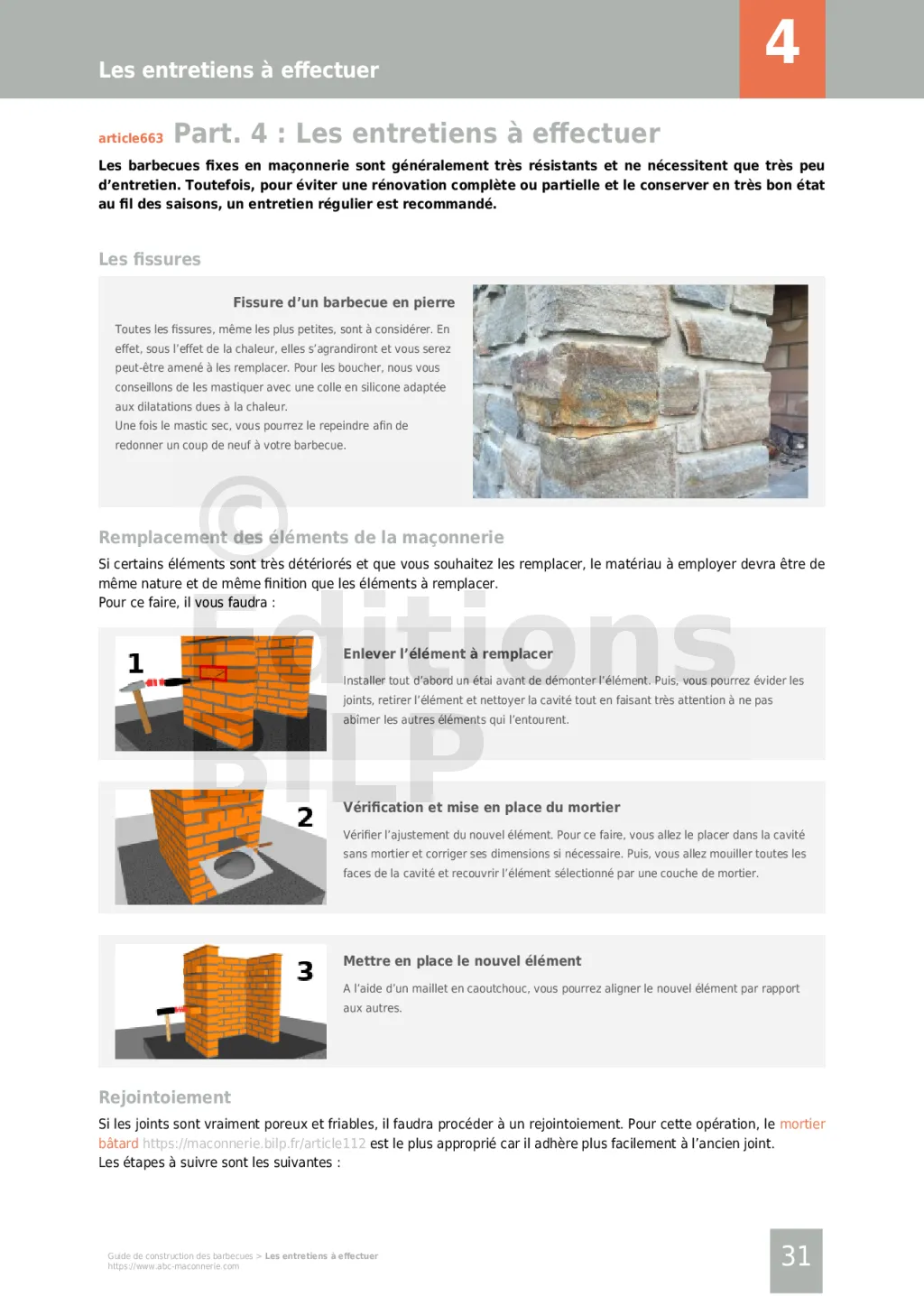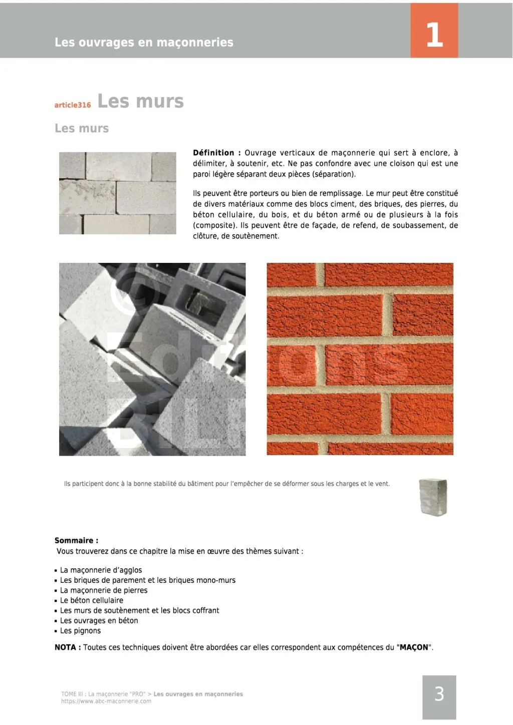 - Les ouvrages en maçonneries