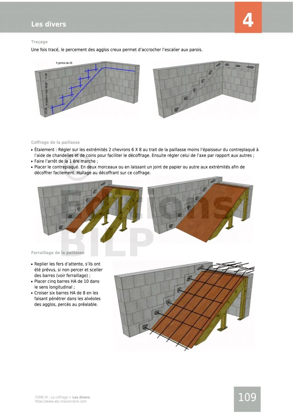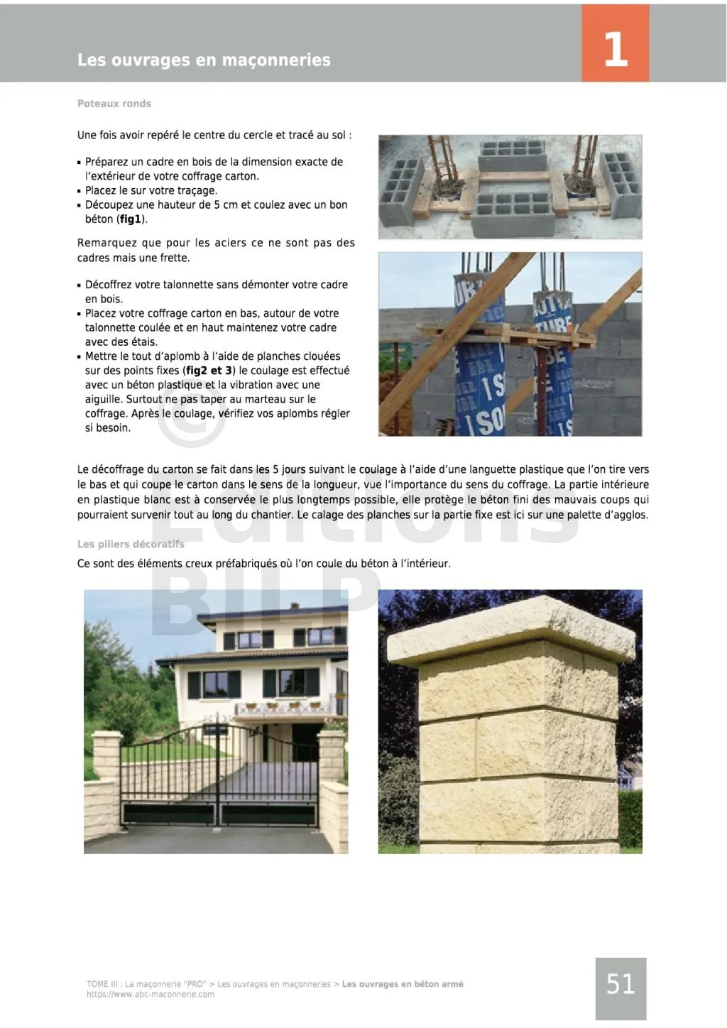 - pour la mise en pratique (le Tome III « La maçonnerie PRO » , Le Tome IV « Le coffrage », le Tome V « La charpente et couverture », Le guide de construction des portails et des clôtures, Le guide de construction des barbecues, Le guide de construction des escaliers, Le guide de construction des murs de soutènement).