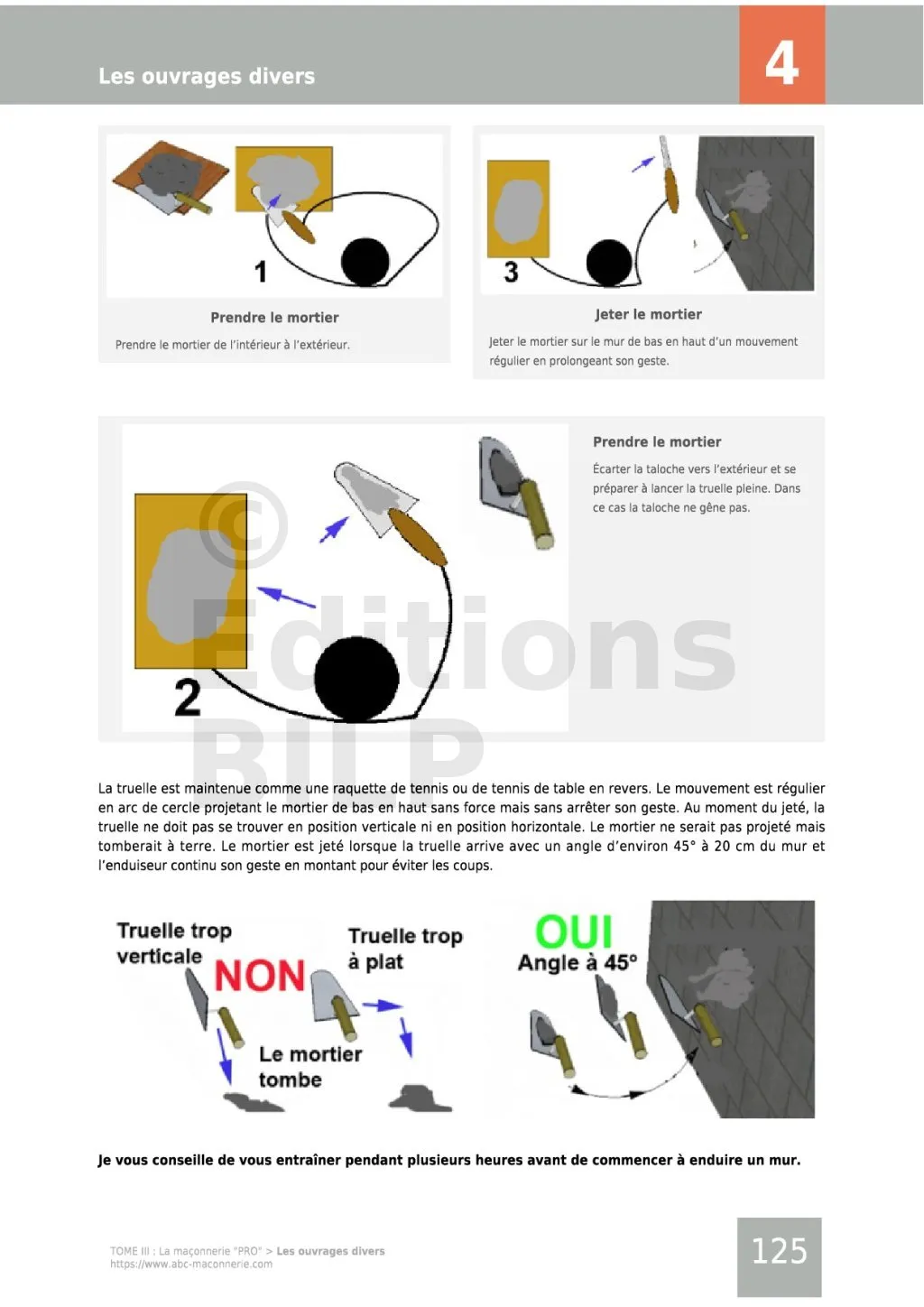 Avec cet ouvrage, vous réaliserez un mur de clôture et ses piliers, des allées avec palier et quelques marches, la réfection d’un dallage d’un appentis, une terrasse, des enduits, des chapes et enfin tous les travaux d’extension et de rénovation et toutes les diverses finitions.