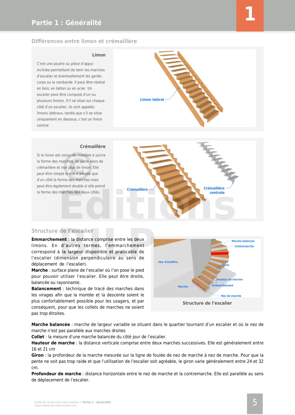 Sommaire du guide de construction des escaliers