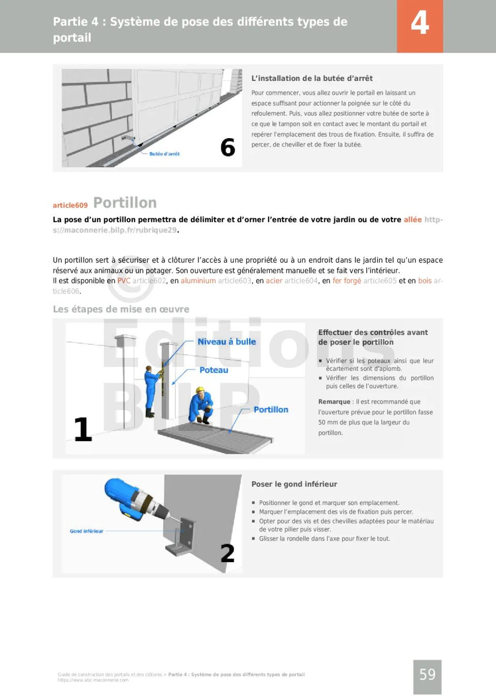 - Système de pose des différents types de portail