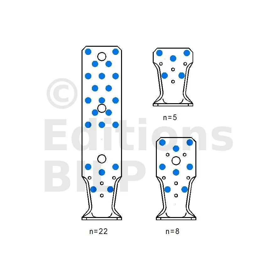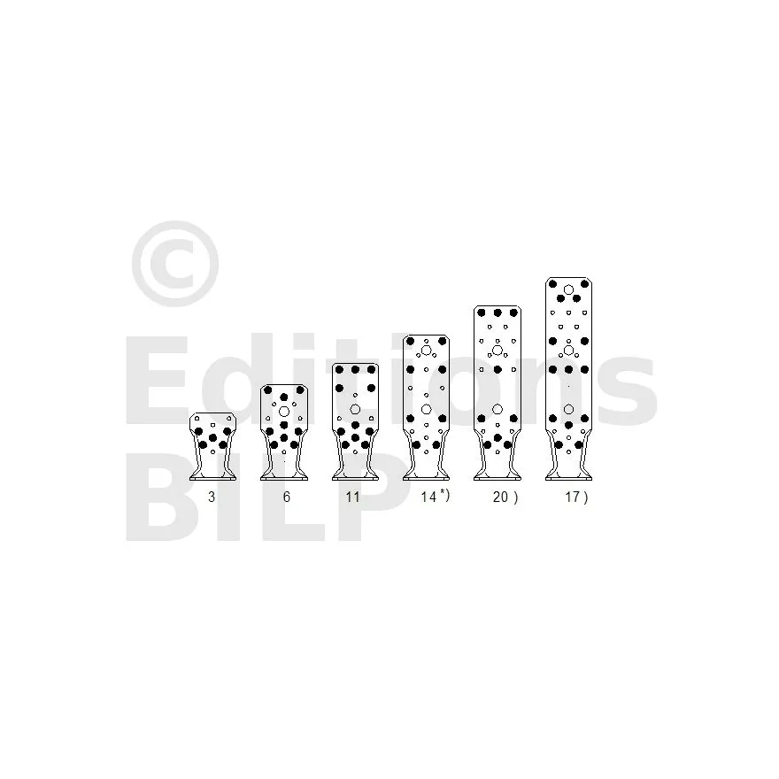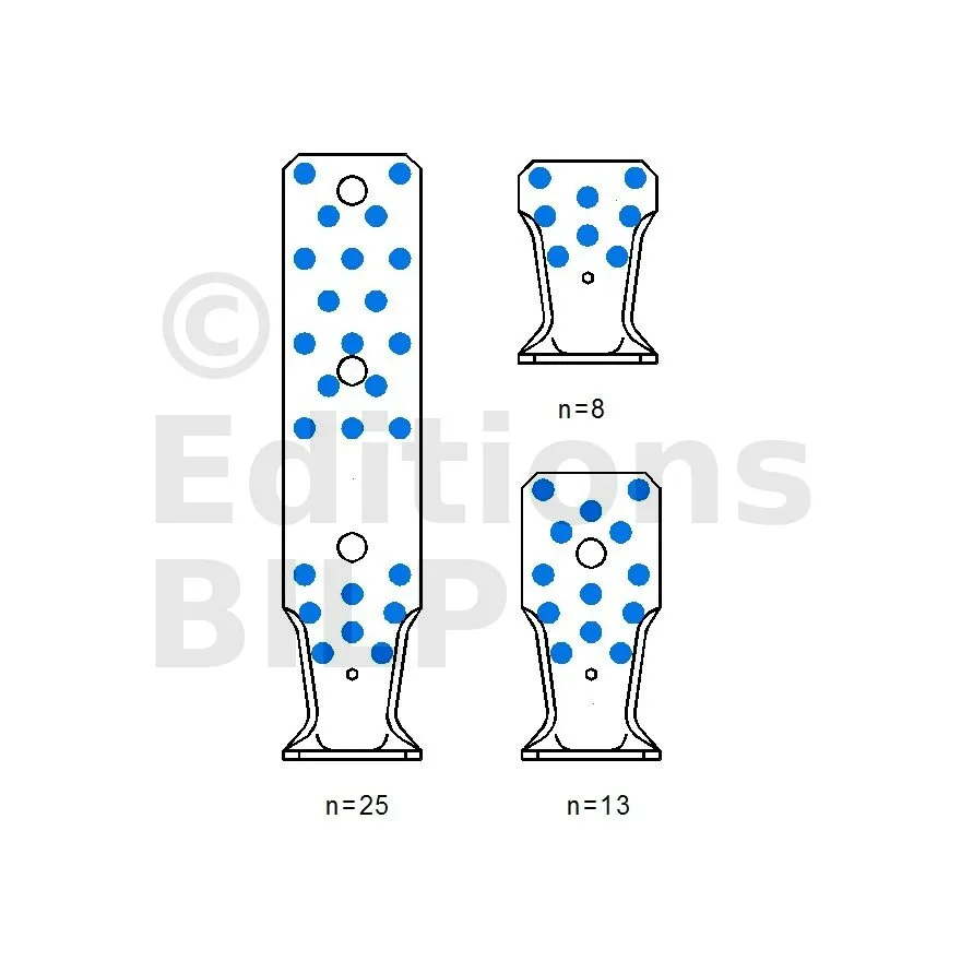 | A | B | C | Ep. | Perçages Aile A | Perçages Aile B | ||||