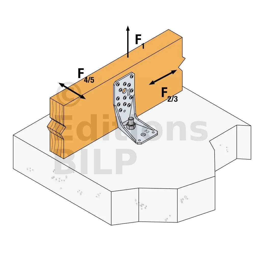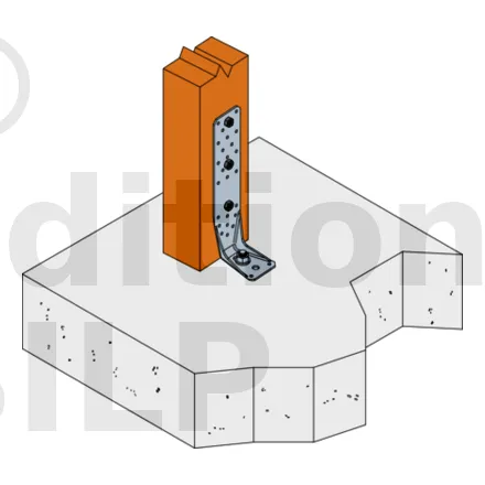 Voir la gamme d’ancrage Simpson Strong-Tie pour trouver le produit adéquat. Les solutions d’ancrage typiques sont BOAXII, SET-XP, WA, AT-HP et dépendent du type de béton, l’entraxe et les distances aux bords.