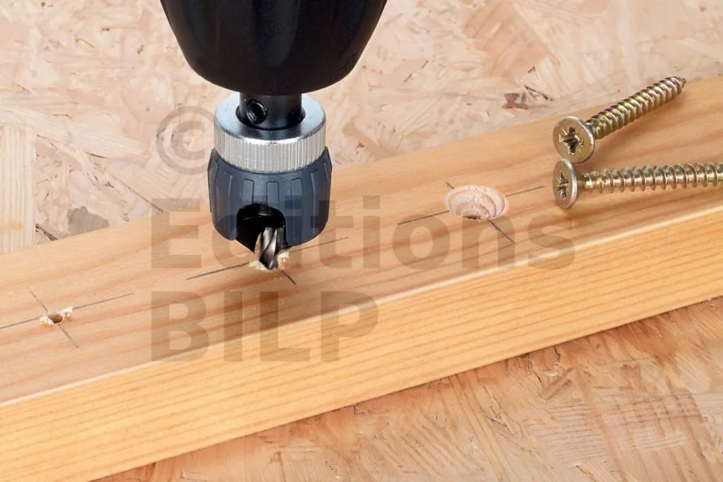 La tête fraisée des vis de terrasse doit reposer dans une petite cuvette fraisée ; cela afin que la tête de vis ne dépasse pas.