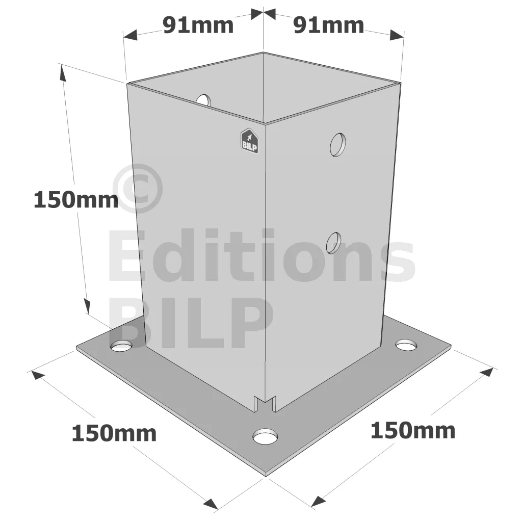 Pied de poteau carré sur platine "prêt-à-fixer"
