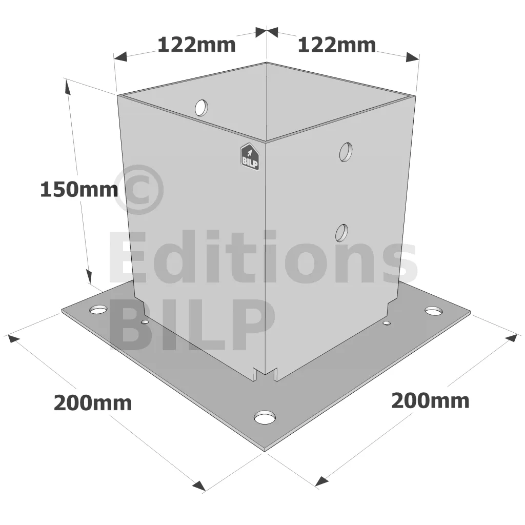 Pied de poteau carré sur platine "prêt-à-fixer"