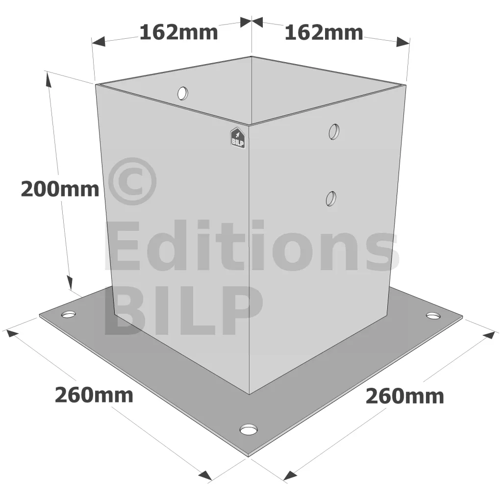 Pied de poteau carré à boulonner - Finition GALVANISEE - Réf. PPJBT160