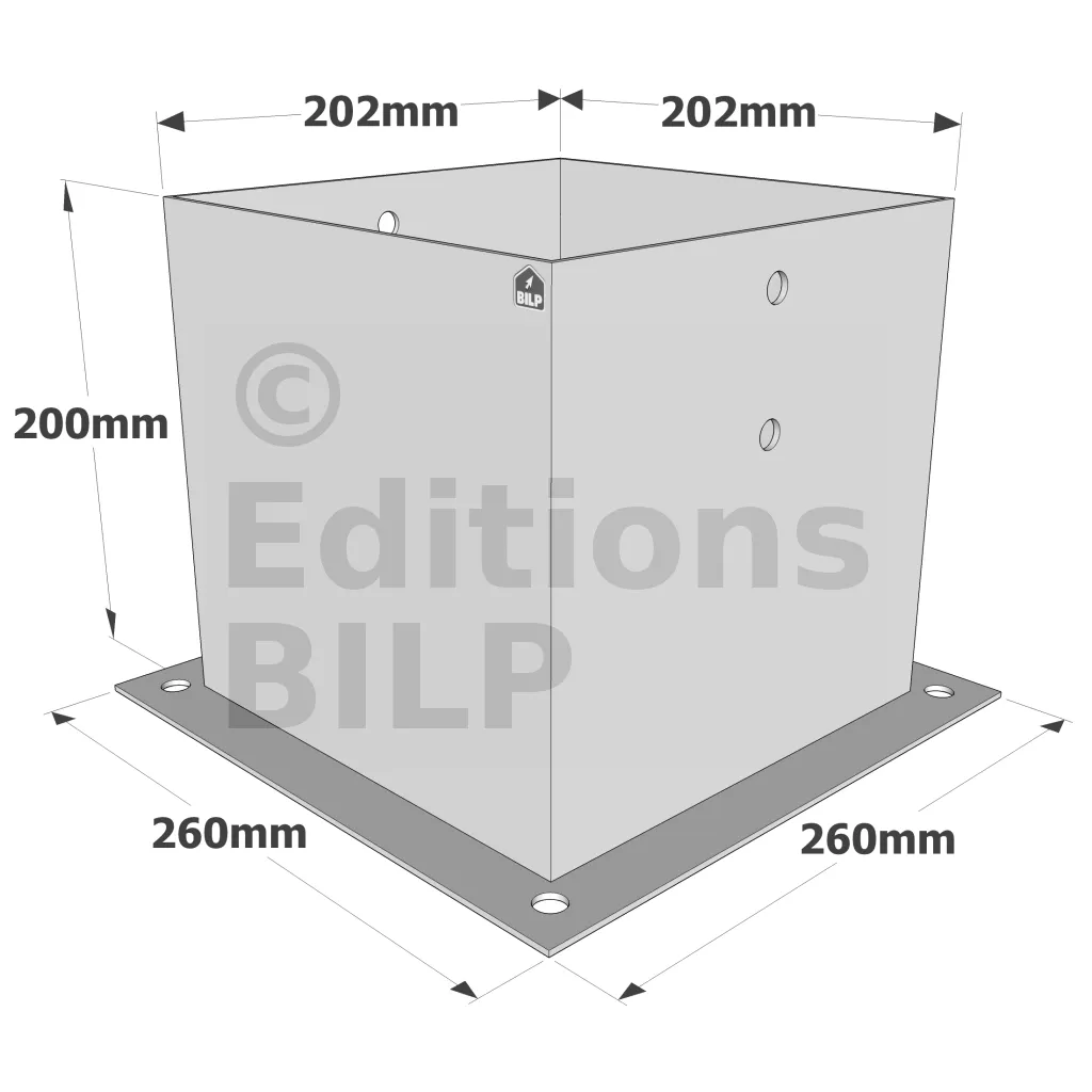 Pied de poteau carré à boulonner - Finition GALVANISEE - Réf. PPJBT200