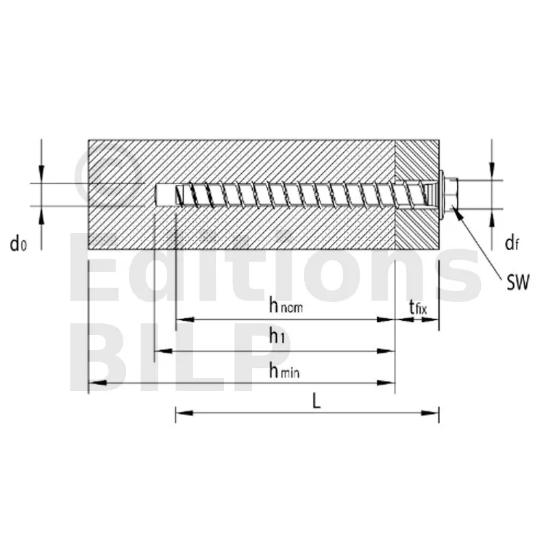 - Prof. d’ancrage nominal, hnom250mm