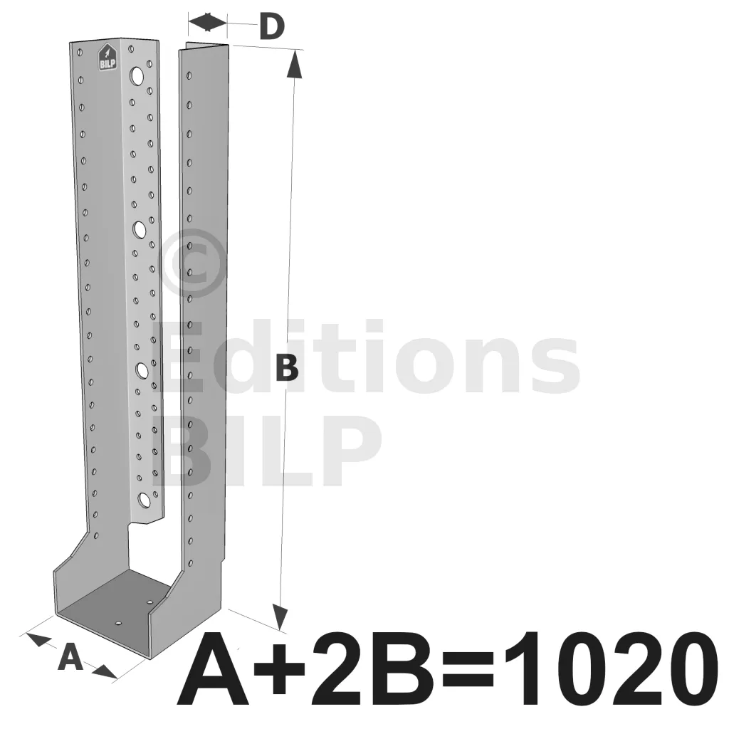 Grands sabots à ailes intérieures, gamme GLI ECONOMIQUE (développé 1020mm, épaisseur 2.5mm, profondeur 90mm) - Réf. GLI1020/2.5X-AL