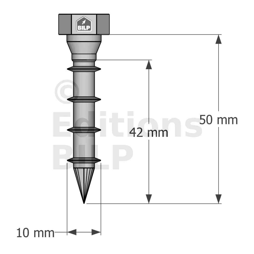 - Marquage de la tête incluant la longueur en mm facilitant le contrôle,