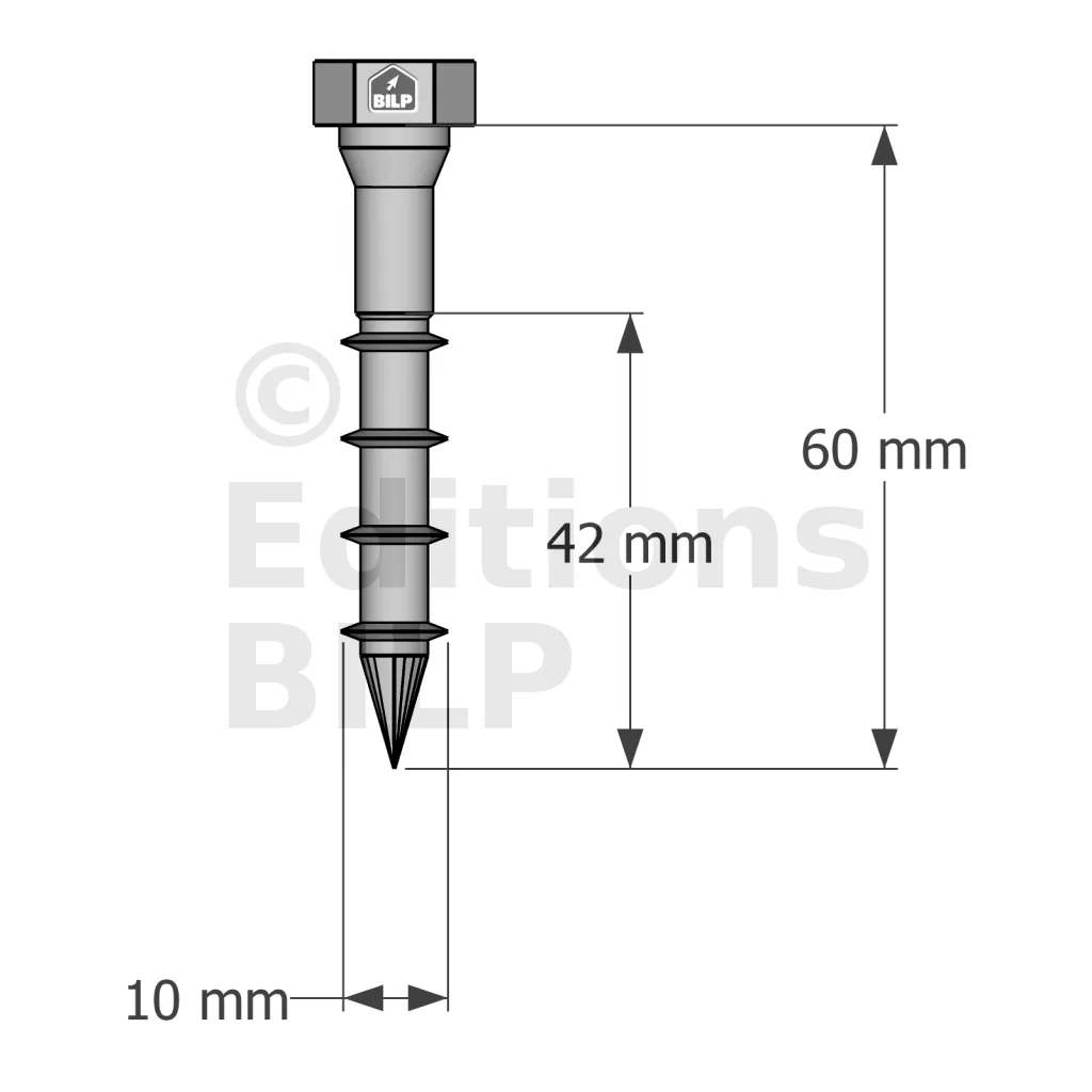 - Marquage de la tête incluant la longueur en mm facilitant le contrôle,