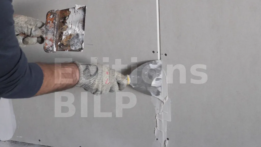 Si les jointures des plaques dépassent 2 mm, il est nécessaire d’appliquer du mortier de rebouchage avant de poser la bande à joint.