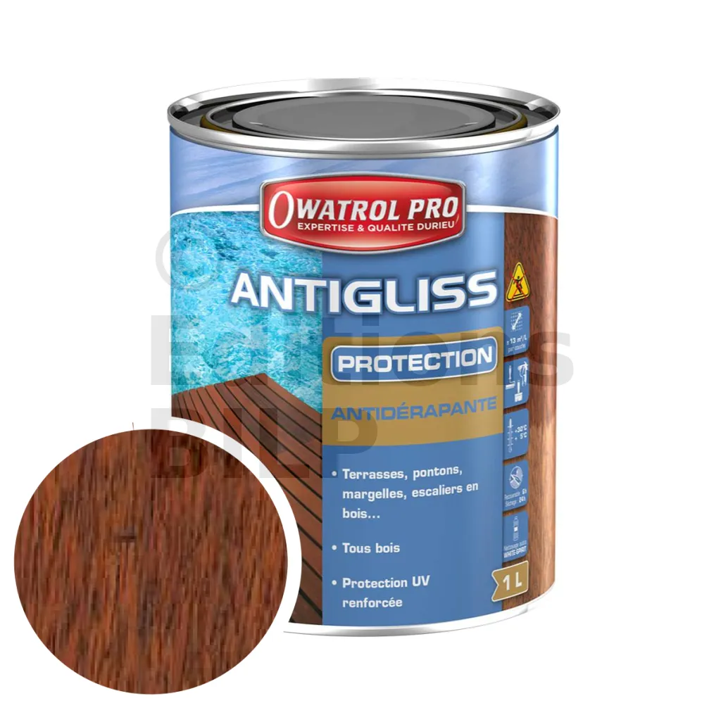 - Protège et décore durablement les ouvrages en bois glissants.