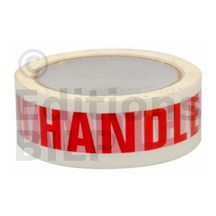 Lettres rouges sur fond blanc indiquant la mention en anglais HANDLE WITH CARE