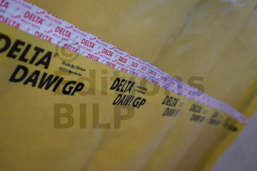 Pieds de mur, façades, cheminée : coller le film sur un support lisse étanche à l’air avec DELTA TIXX.