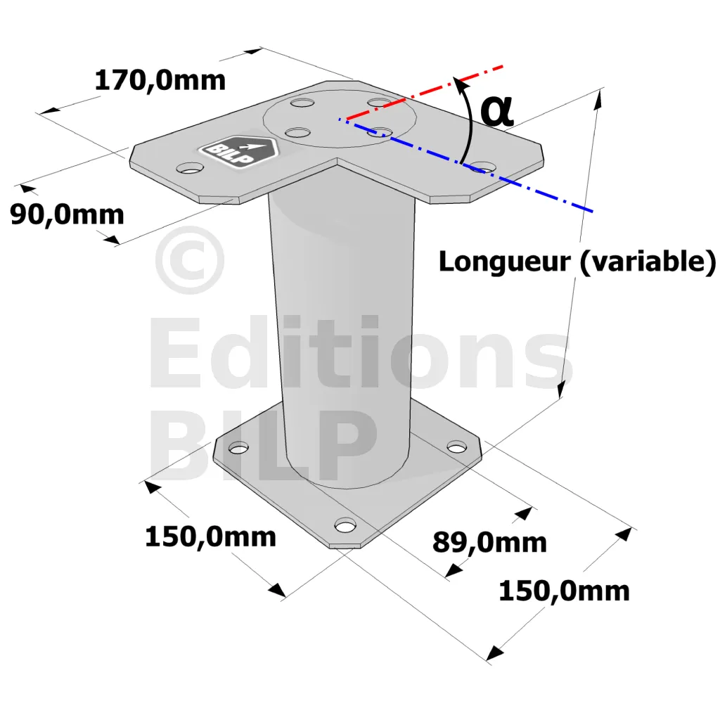 Poteau structurel OSP - D89mm - Platine haute en angle 90x170mm - Embase 150x150mm - Réf. SP1-SP4Ø89_90x170