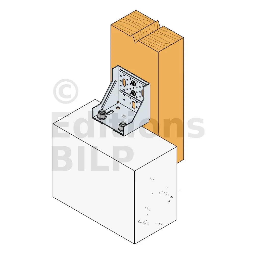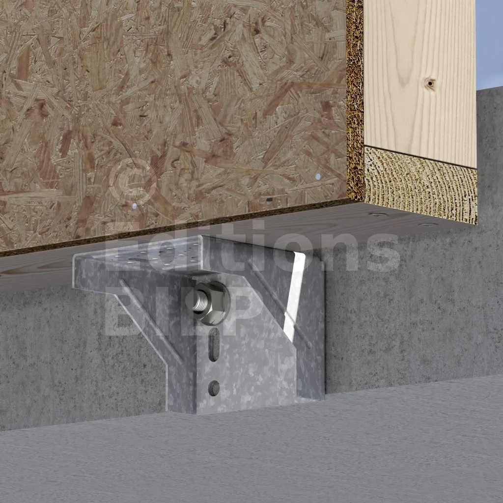 Ce connecteur a été développé pour être utilisé avec des murs rideaux bois, fixés sur dalle béton. Il peut être utilisé dans plusieurs configurations en fonction des besoins. Sa forme particulière lui permet de reprendre des charges importantes sans aucune déformation.