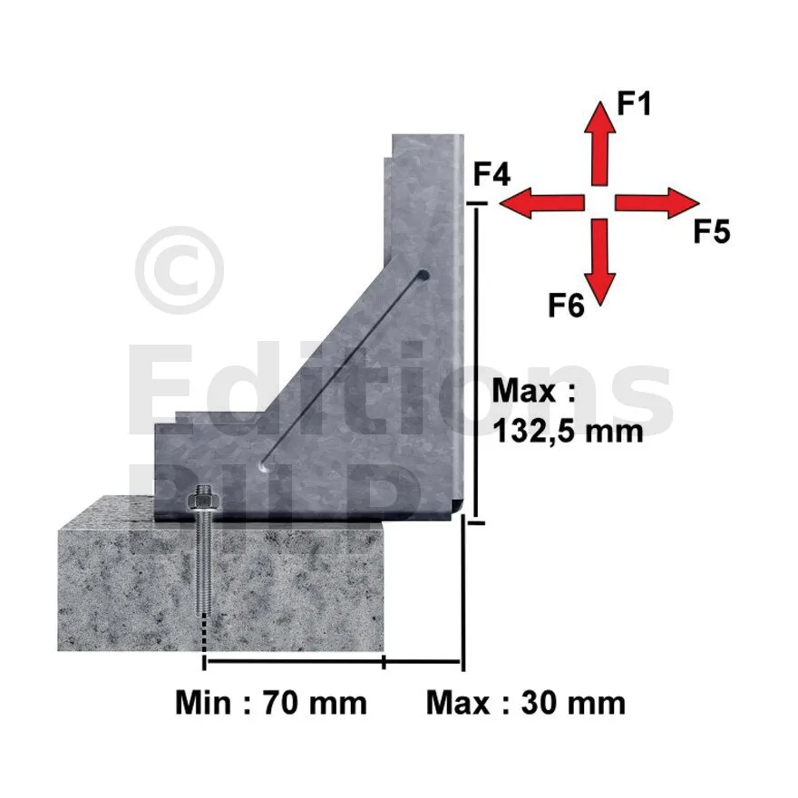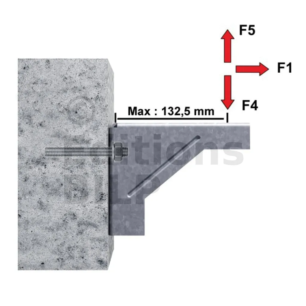 Compte-tenu des charges à reprendre, il est indispensable de vérifier la résistance des ancrages et du béton. En effet, dans certains cas, la résistance de l’ACW155 peut être limitée par la reprise de charge du béton et des ancrages.
