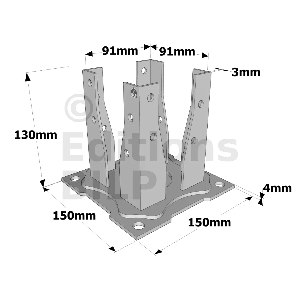 Le pied de poteau carré sur platine AG527P est préconisé dans la réalisation de petits ouvrages tels que les clôtures de jardin. Très facile à démonter, il est particulièrement adapté pour des structures temporaires. Le AG527P est à boulonner.