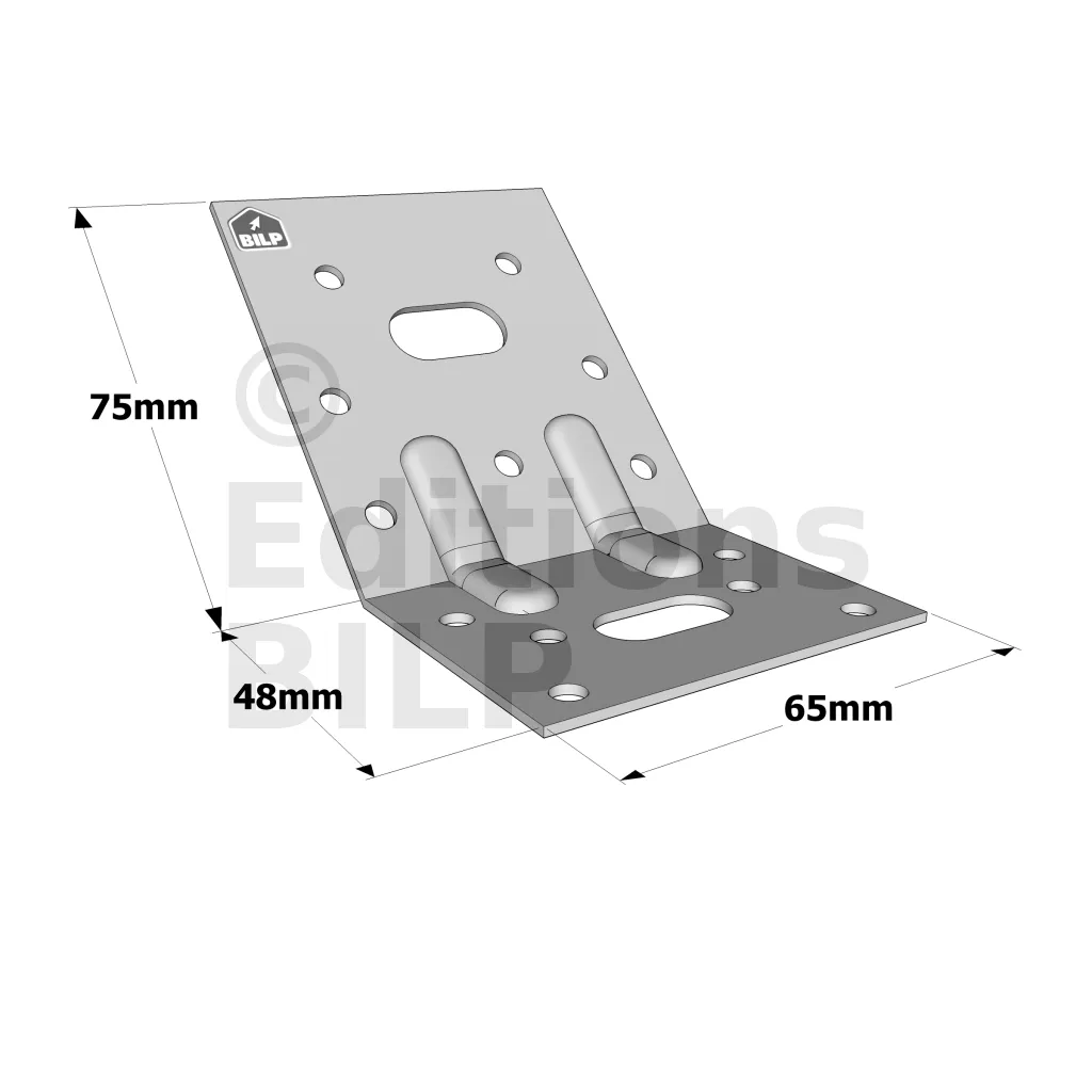 Équerres renforcées CLASSIQUES asymétriques pour le BOIS et le BETON - Réf. E5/1.5/135