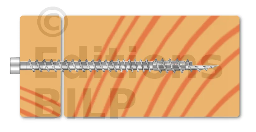 - Tête cylindrique : diminue l’éclatement du bois et rend la fixation invisible dans le bois,