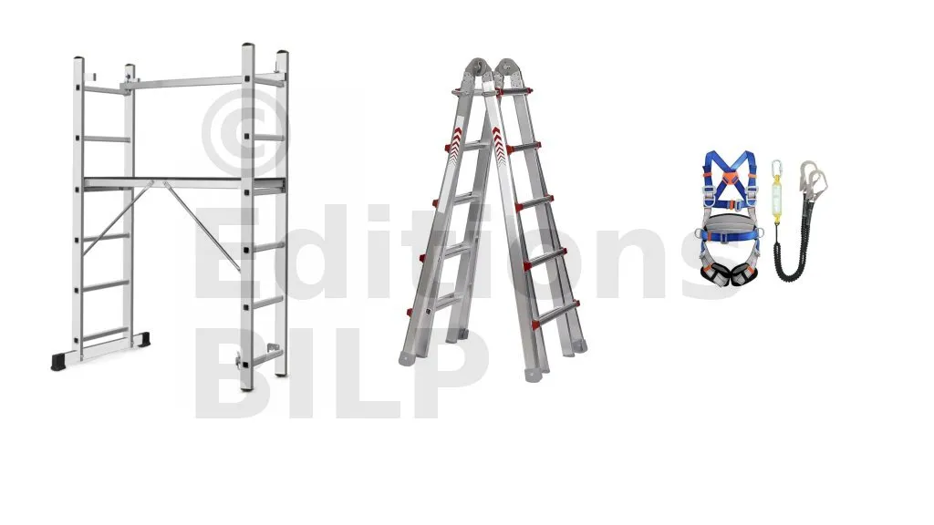 Nous avons besoin des équipements de protection individuelle de base. En raison du travail en hauteur, des matériels supplémentaires sont également nécessaires :
