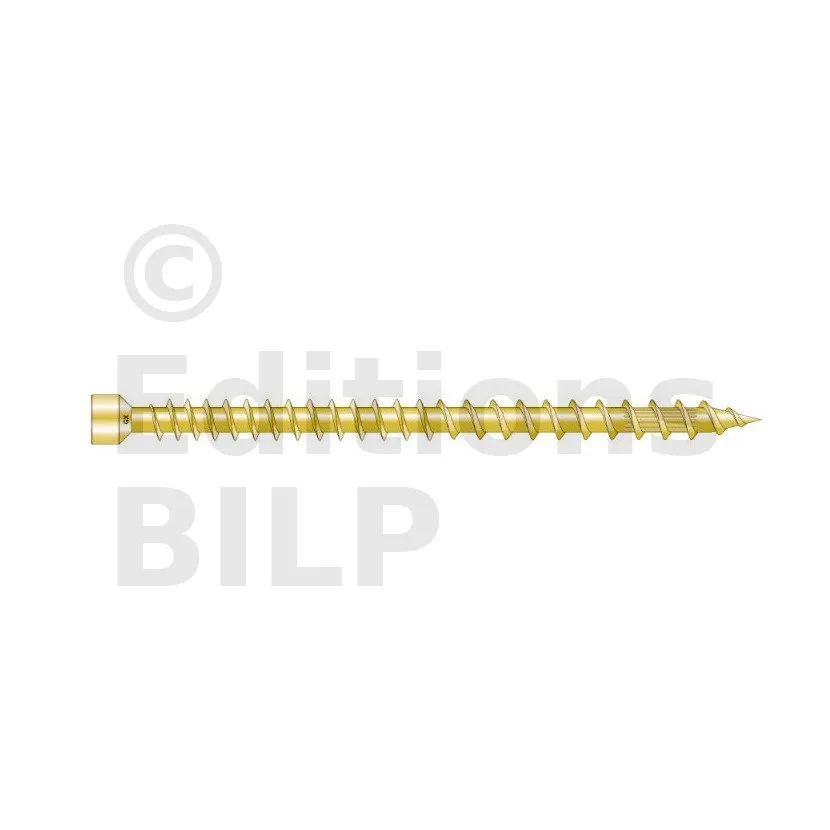 - Tête cylindrique : diminue l’éclatement du bois et rend la fixation invisible dans le bois,