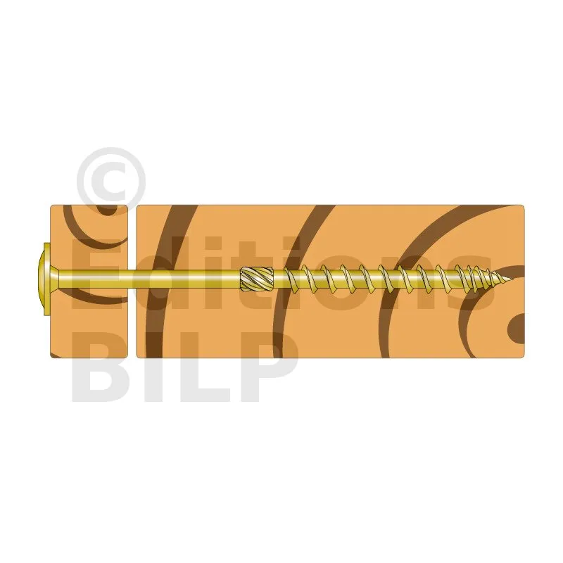 - Une vis dont l’axe est de 45 à 90° du fil du bois dans le cas des ESCR(XXX), et à 90° du fil du bois pour les autres vis.