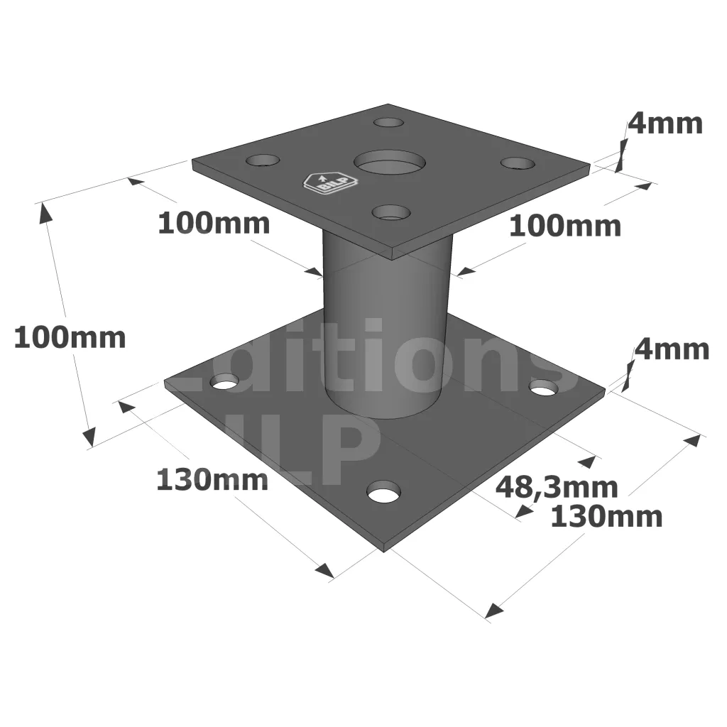 1. Placer la platine supérieure du pied de poteau (dimensions 100 x 100 mm) sous le poteau.