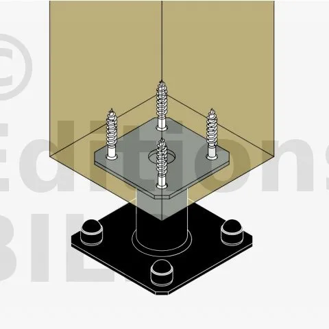 2. Fixer cette platine au poteau à l’aide de tirefonds LAG (pré-perçage nécessaire).