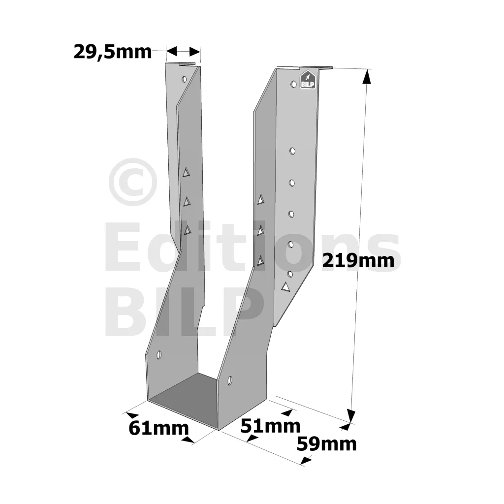 Les étriers à brides latérales IUSE garantissent une mise en œuvre facilitée grâce aux brides supérieures, tout en assurant un maintien de la membrure basse par forte adhérence. Le clouage s’effectue sur les brides latérales après un prépositionnement possible avec le "speed-prong".