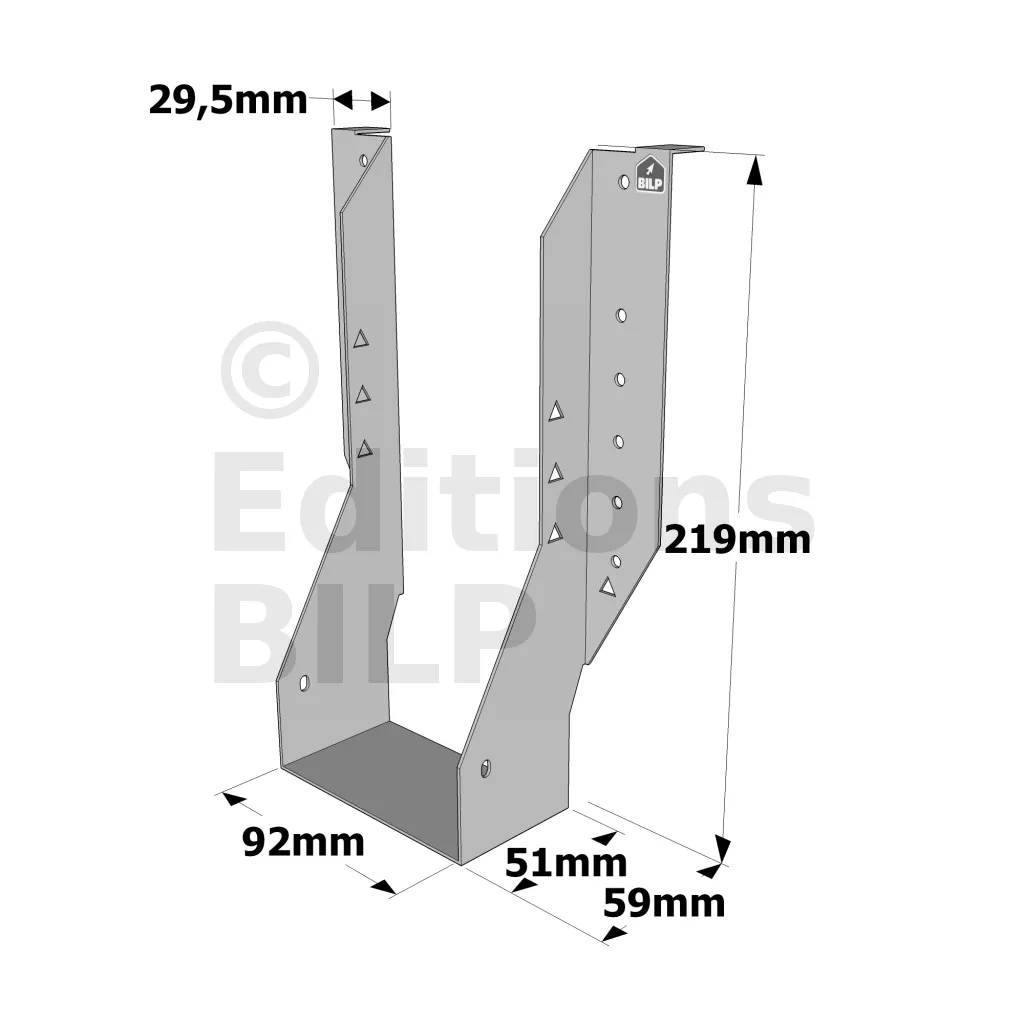 Les étriers à brides latérales IUSE garantissent une mise en œuvre facilitée grâce aux brides supérieures, tout en assurant un maintien de la membrure basse par forte adhérence. Le clouage s’effectue sur les brides latérales après un prépositionnement possible avec le "speed-prong".