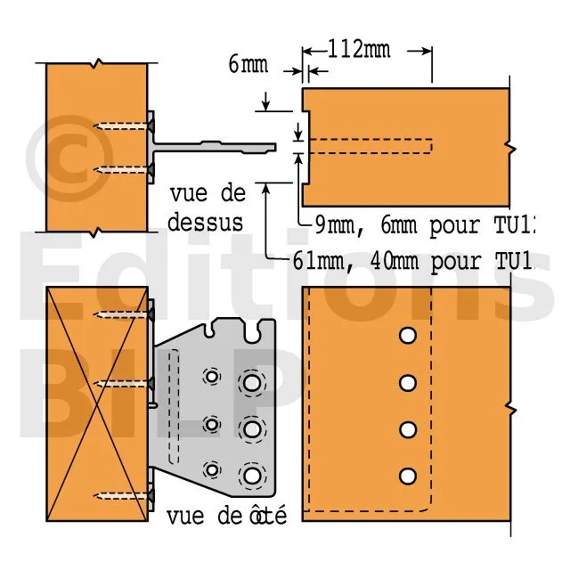 1- Réaliser une entaille verticale dans la poutre portée (largeur 6 mm pour le TUS12 et largeur 9 mm pour les TUS16 à TUS28),
