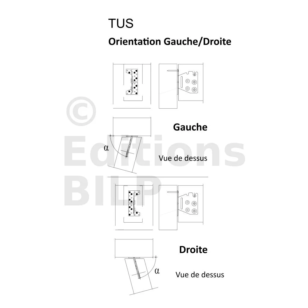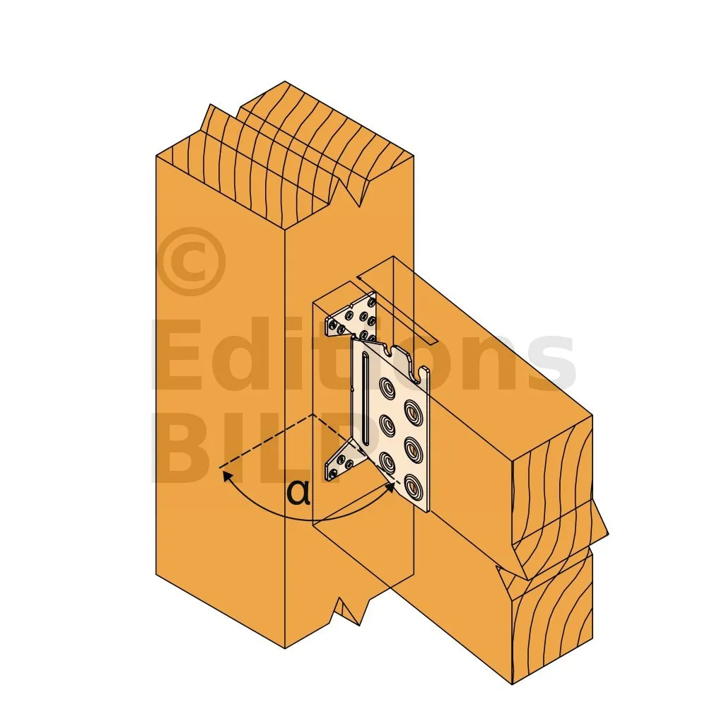 L’étrier TUS à âme intérieure permet un assemblage invisible. Plié sur demande, convient aux applications avec un angle allant de 30 à 85°. L‘encoche en tête facilite la pose sur le chantier.