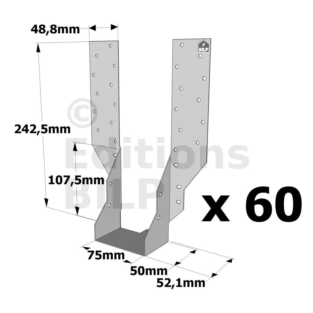 Sabot à bretelles JHA : la solution fiable pour vos solivages - Réf. JHA270/75_60