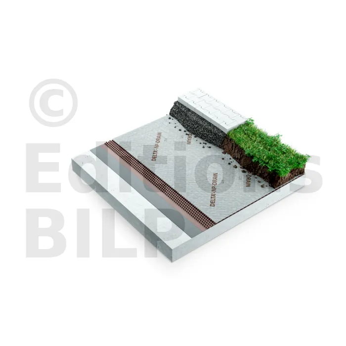 - À la verticale : protection et drainage des parois enterrées.