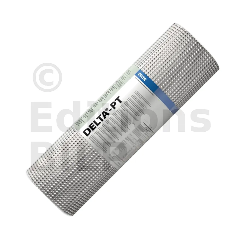 - DELTA®-PT possède des alvéoles de 8 mm de hauteur qui créent un espace isolé entre la paroi humide et la nouvelle couche de finition. Cette configuration permet de créer une nouvelle surface saine et sans humidité ni moisissure.