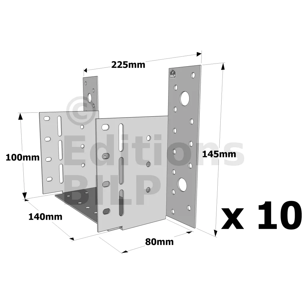 Les étriers pour croupe sont utilisés dans la fermette de section 38mm. Ils permettent la réalisation d‘une croupe en assemblant les demi-fermes d‘arêtier et d‘empannon. Les modèles différent suivant le type de mise en œuvre.