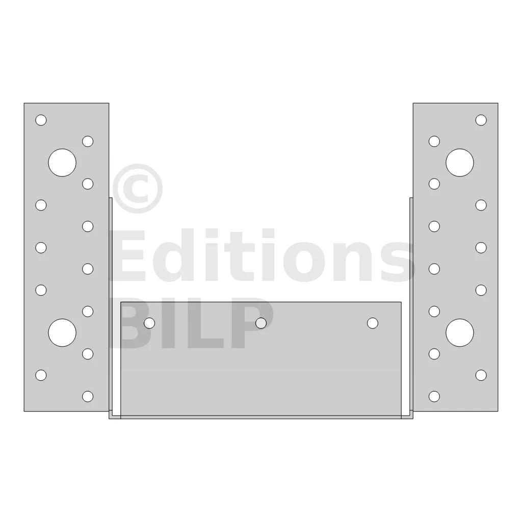 - Perçages sur portéFlancs : 6Ø5 ; 8Ø5x7.5 - Fond : 10Ø5