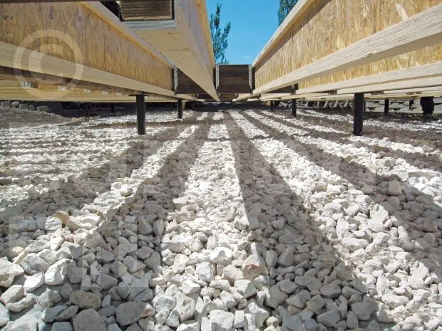 La pose des tasseaux commence par le bas, avec la première rangée fixée contre les contre-lisses. La structure du mur étant masquée par le pare-pluie, l’alignement est repéré à l’aide du niveau laser qui devrait correspondre à l’alignement des contre-lisses (voir l’article Le coffrage pour l’utilisation du laser).