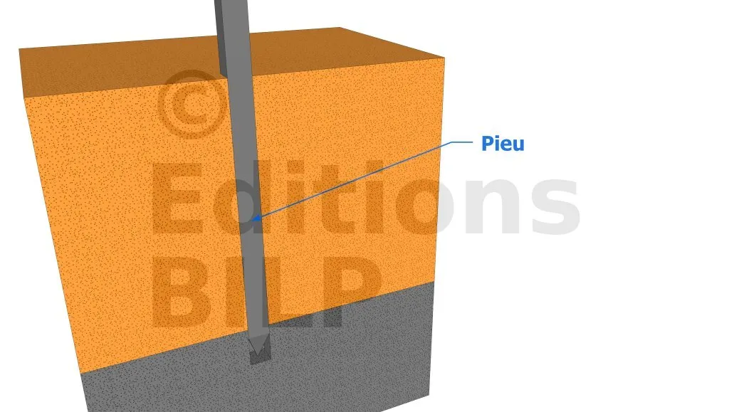 Les pilotis sont similaires aux pieux mais sont utilisés lorsque le sol de surface est trop faible pour supporter des semelles. Ce type de fondation répond aux contraintes du terrain. Une maison sur pilotis convient pour des constructions poteaux-poutres où les pieux et les pilotis sont encastrés pour reprendre les efforts verticaux et assurer le contreventement.