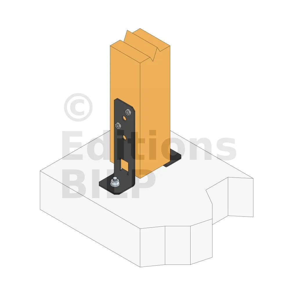 L’installation de deux pieds de poteau est nécessaire pour des sections de poteaux carrés jusqu’à 150x150 mm. Pour des sections plus importantes (250x250 maximum), l‘utilisation de 4 pieds par poteau est préconisée.