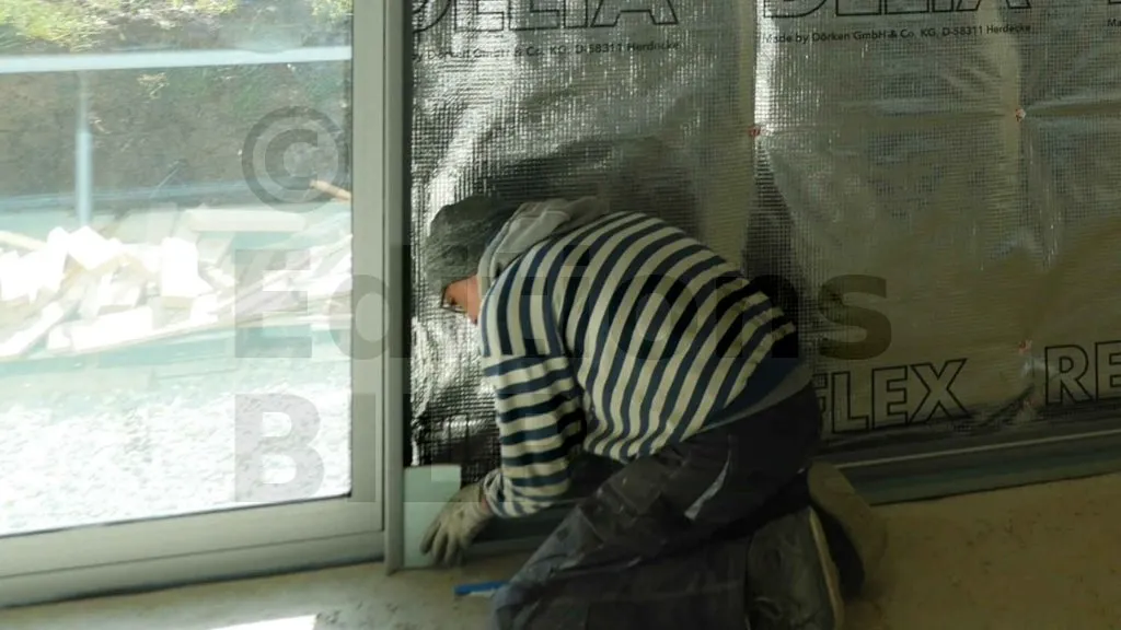 La première étape du montage consiste à poser une bande résiliente sous le rail bas. Cette bande souple permet de limiter les transmissions de bruit et d’améliorer l’isolation acoustique. Une fois la bande en place, le rail bas au est fixé sol à l’aide de chevilles à frapper. Il faut s’assurer que le rail est bien droit et parfaitement aligné avec l’implantation prévue.