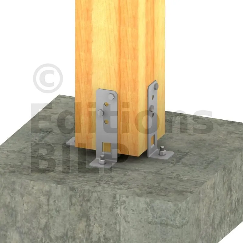 L’installation de deux pieds de poteau est nécessaire pour des sections de poteaux carrés jusqu’à 150x150 mm. Pour des sections plus importantes (250x250 maximum), l‘utilisation de 4 pieds par poteau est préconisée.