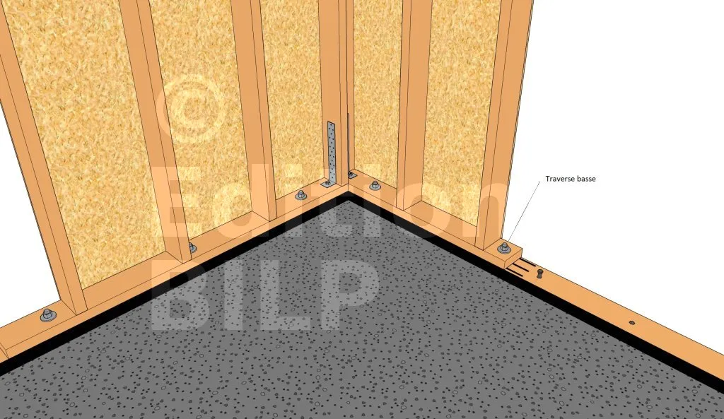 La traverse basse est souvent utilisée de manière interchangeable avec la lisse basse. Elle est placée à la base des montants verticaux, offrant une stabilité supplémentaire et un point de fixation robuste pour les montants. La traverse basse doit être solidement ancrée à la fondation pour garantir la rigidité de l’ensemble.