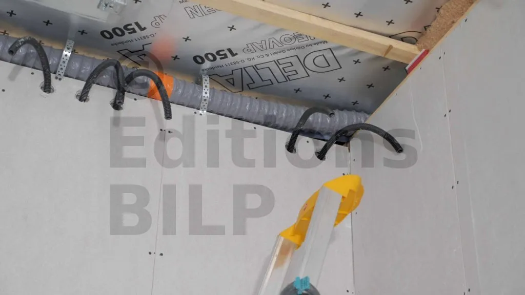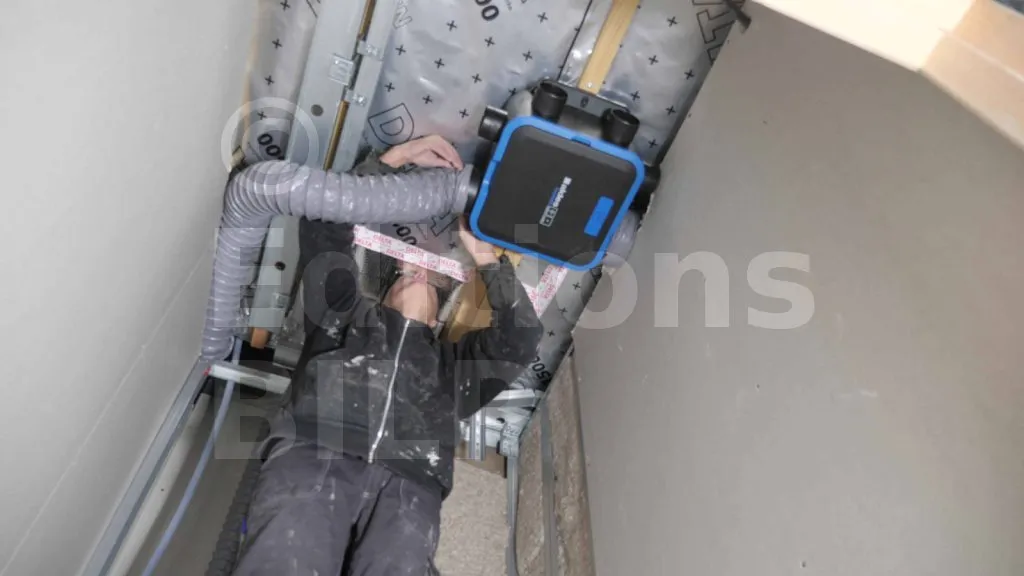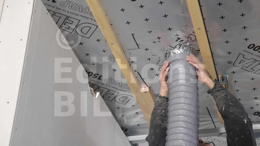 Les gaines doivent être posées sans tension, bien déroulées et avec le moins de coudes possible. Il ne faut jamais raccorder plusieurs bouches sur une même gaine, car cela empêche une bonne extraction de l’air. Chaque bouche doit avoir sa propre gaine qui va jusqu’au caisson.